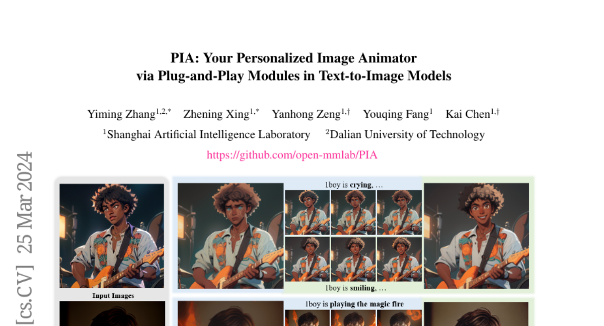 PIA: Your Personalized Image Animator