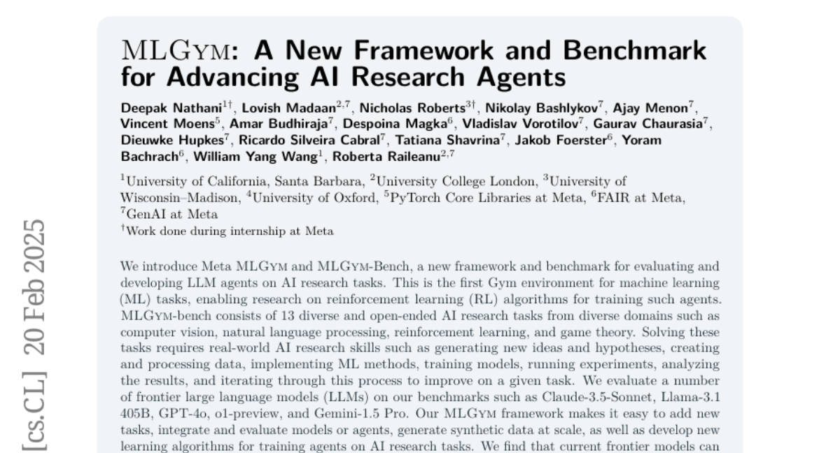 MLGym: A New Framework and Benchmark for Advancing AI Research Agents