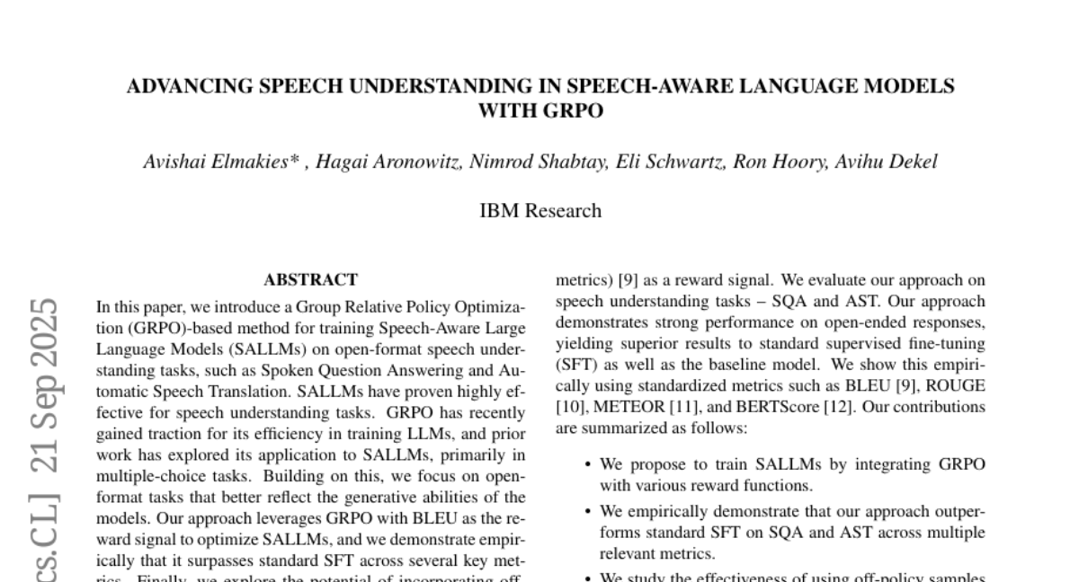 Advancing Speech Understanding in Speech-Aware Language Models with GRPO
