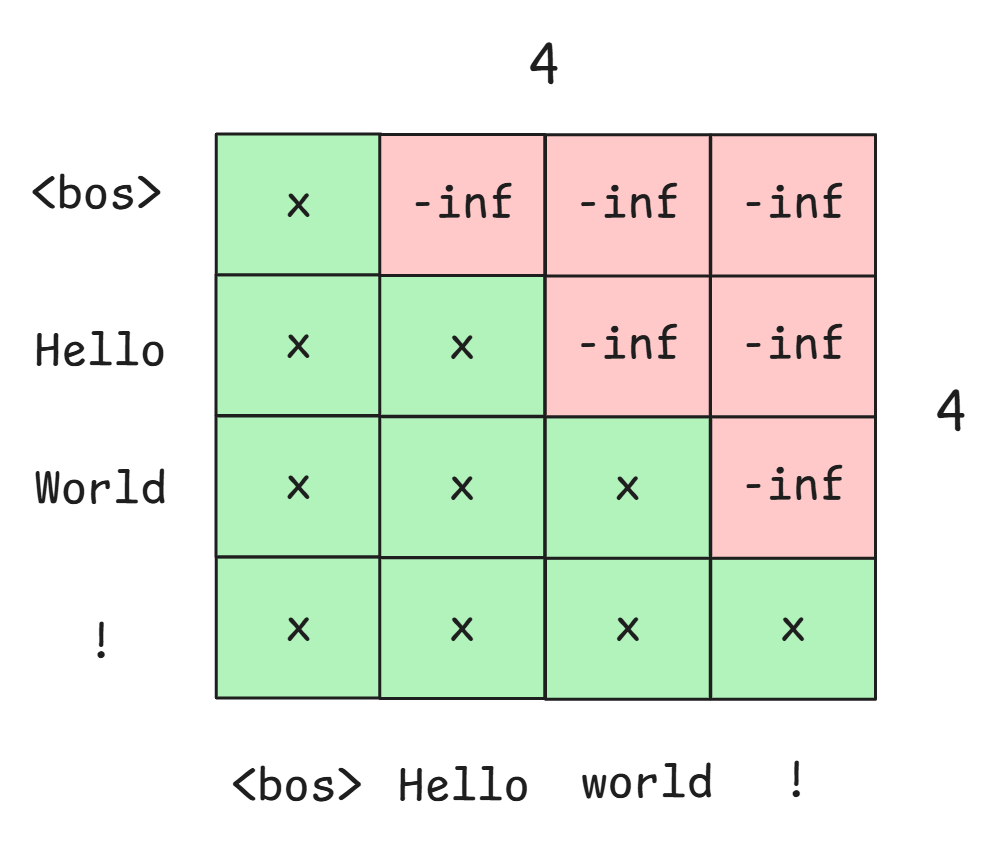 The mask ensures each token attends only to itself and preceding tokens, preventing the model from accessing future tokens during generation.