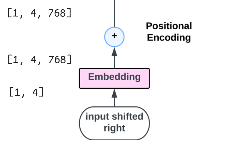 The input tensor undergoes transformations in each layer, affecting both its values and, in some cases, its shape. When the tensor reaches the embedding layer, its shape becomes [1,4,768] [1, 4, 768] , where 768 represents the embedding dimension.