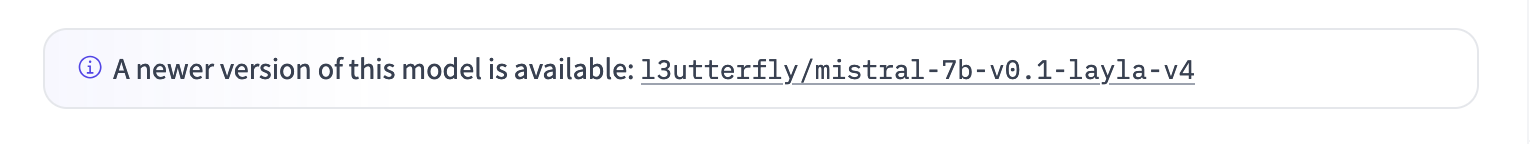 new_version: l3utterfly/mistral-7b-v0.1-layla-v4This metadata will be used to display a link to the latest version of a model on the model page. If the model linked in new_version also has a new_version field, the very latest version will always be displayed.