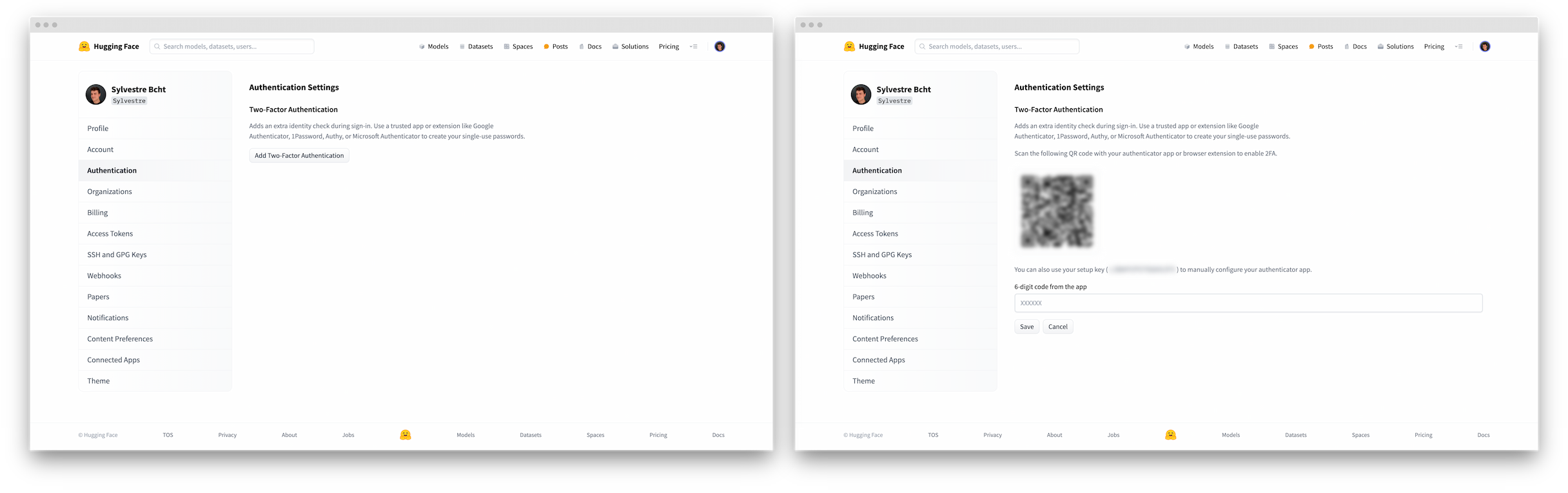 - You should copy and print the codes, or download them for storage in a safe place. If you choose to download them, the file is called huggingface-recovery-codes.txt