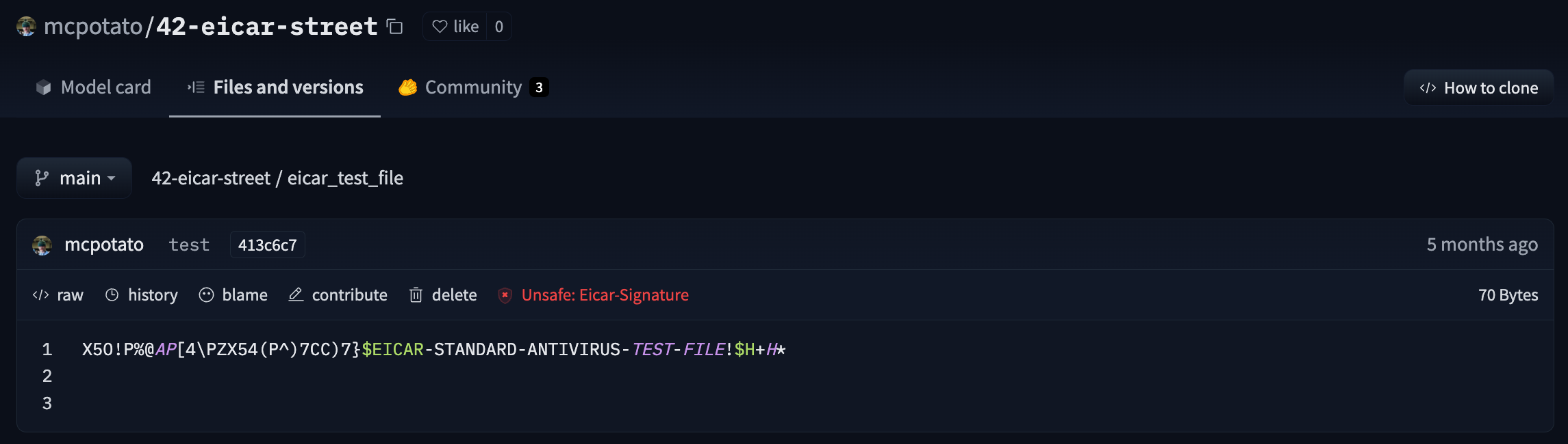 Update on GitHubAs the repository owner, we advise you to remove the suspicious file. The repository will appear back as safe.