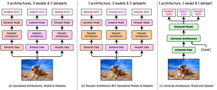 - OneFormer requires two inputs during inference: image and task token.