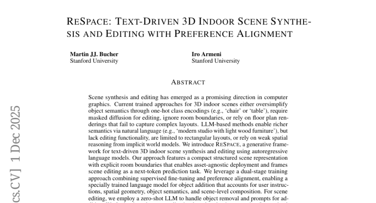 ReSpace: Text-Driven 3D Scene Synthesis and Editing with Preference Alignment
