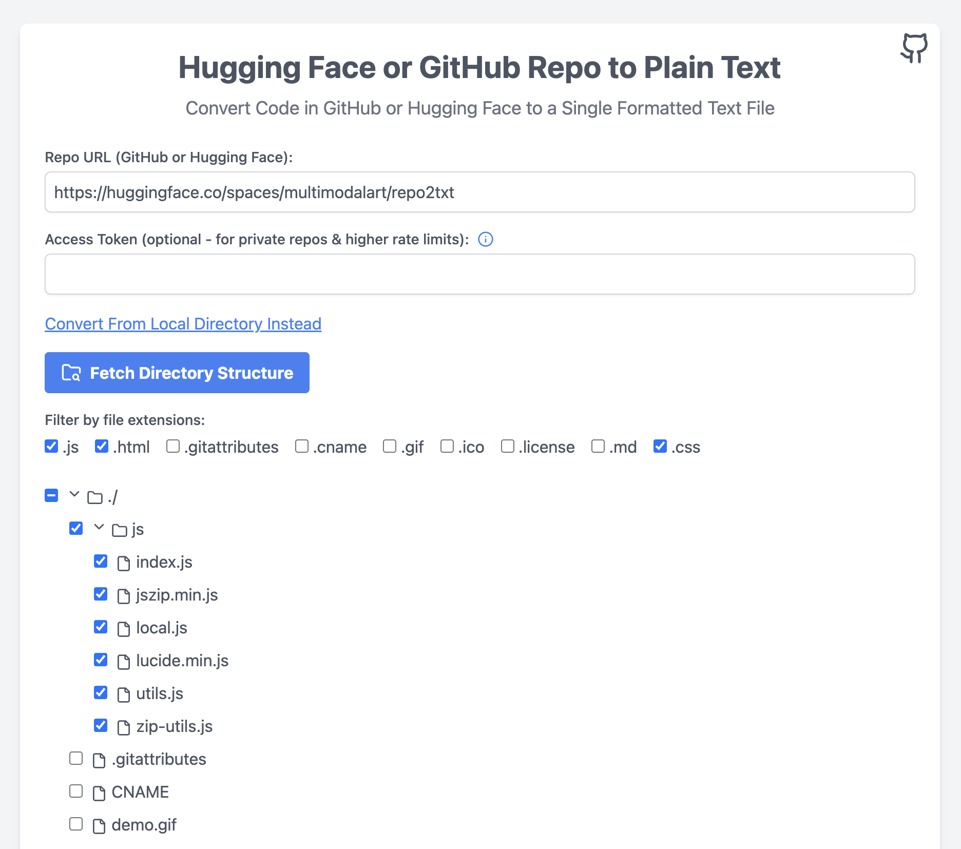 view post Post 6120 Want to iterate on a Hugging Face Space with an LLM? Now you can easily convert any HF entire repo (Model, Dataset or Space) to a text file and feed it to a language model! multimodalart/repo2txt See translation 🤗 3 3 🚀 1 1 👍 1 1 + Reply