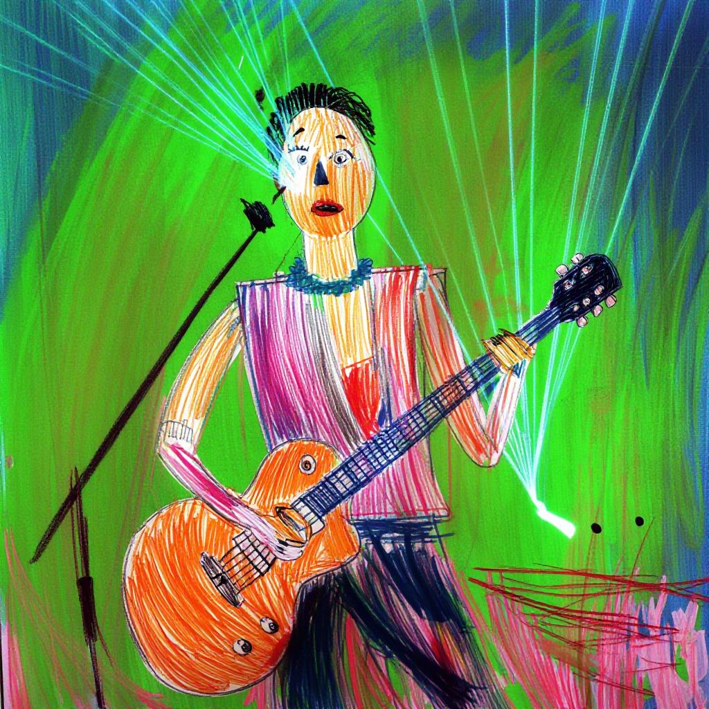 - woman playing the guitar, on stage, singing a song, laser lights, punk rocker