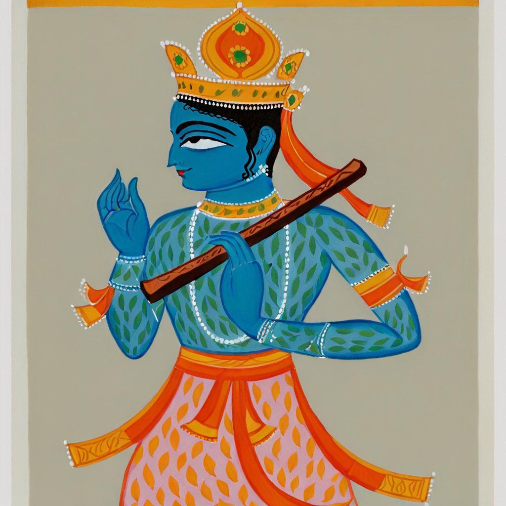 - A painting of Lord Krishna holding his flute