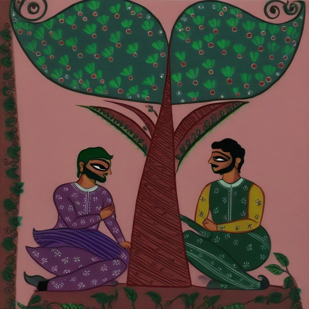 - A painting of two guys sitting under a tree
